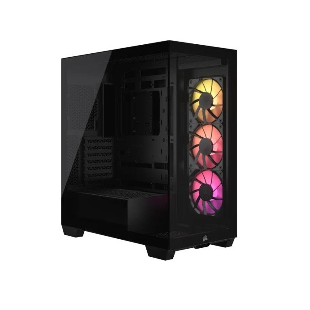 El chasis para PC de cristal CORSAIR 3500X ARGB semitorre combina elementos que facilitan el montaje con una impresionante estética de cristal envolvente y tres ventiladores iCUE LINK RS120 RGB preinstalados.