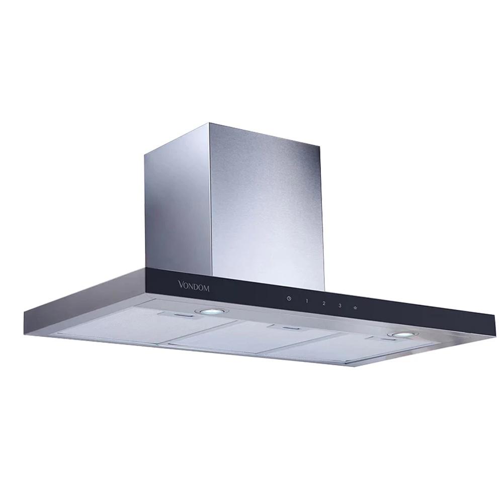 Moderniza tu cocina con nuestra campana de acero inoxidable con frente negro Vondom.