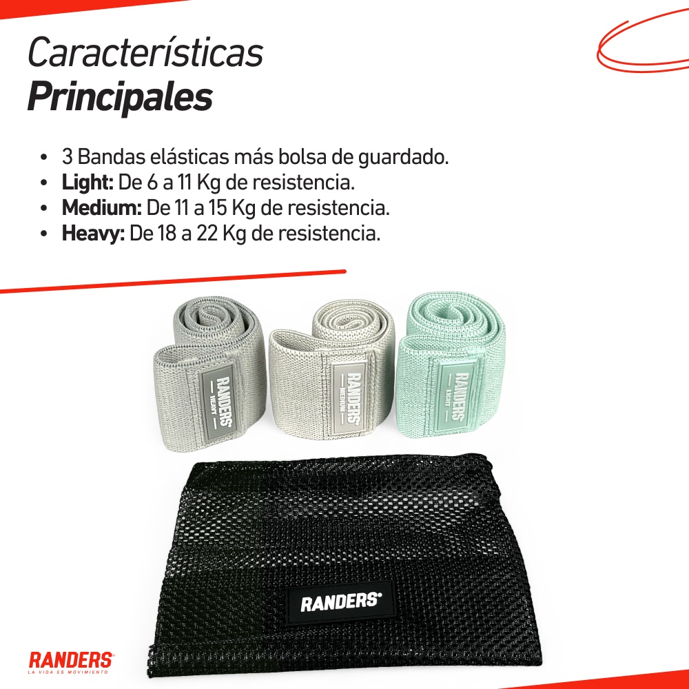 Kit de 3 Bandas Elasticas Resistencia Tela Randers Mineral Set Calm Collection