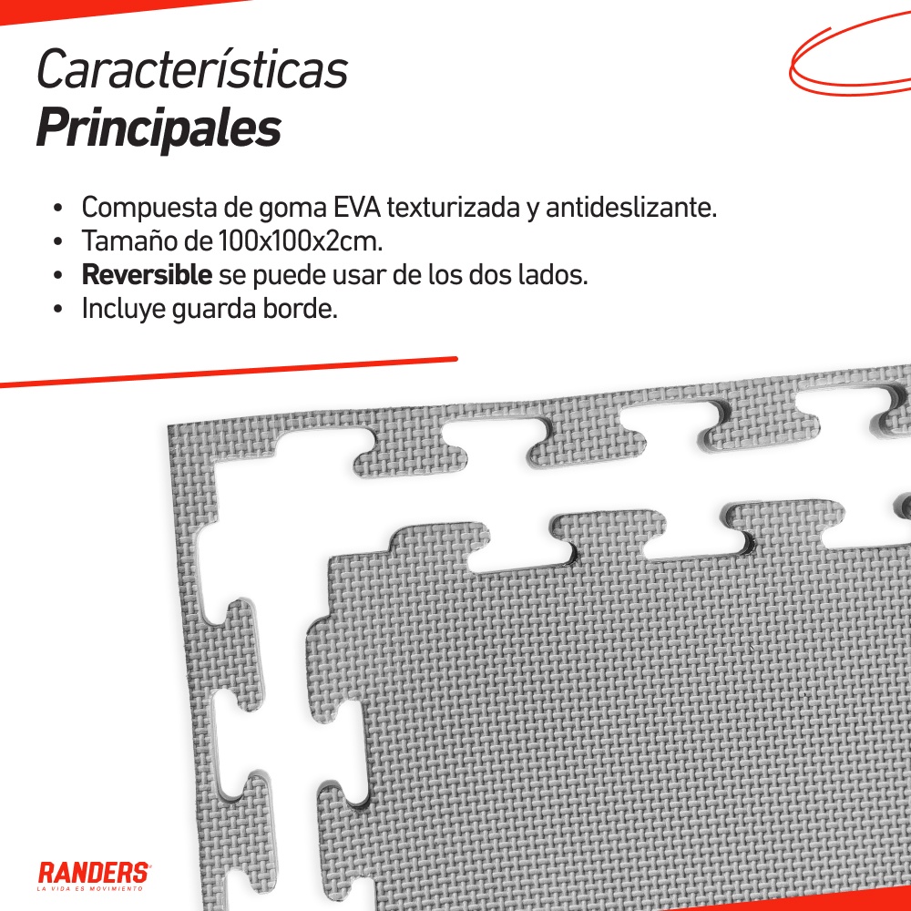 Fabricado en goma EVA texturada y antideslizante, es resistente al agua y de fácil limpieza, asegurando durabilidad y practicidad. Con un peso de solo 1.6 kg, es fácil de montar y desmontar, adaptándose a cualquier espacio. ¡Hacé de tu lugar de e