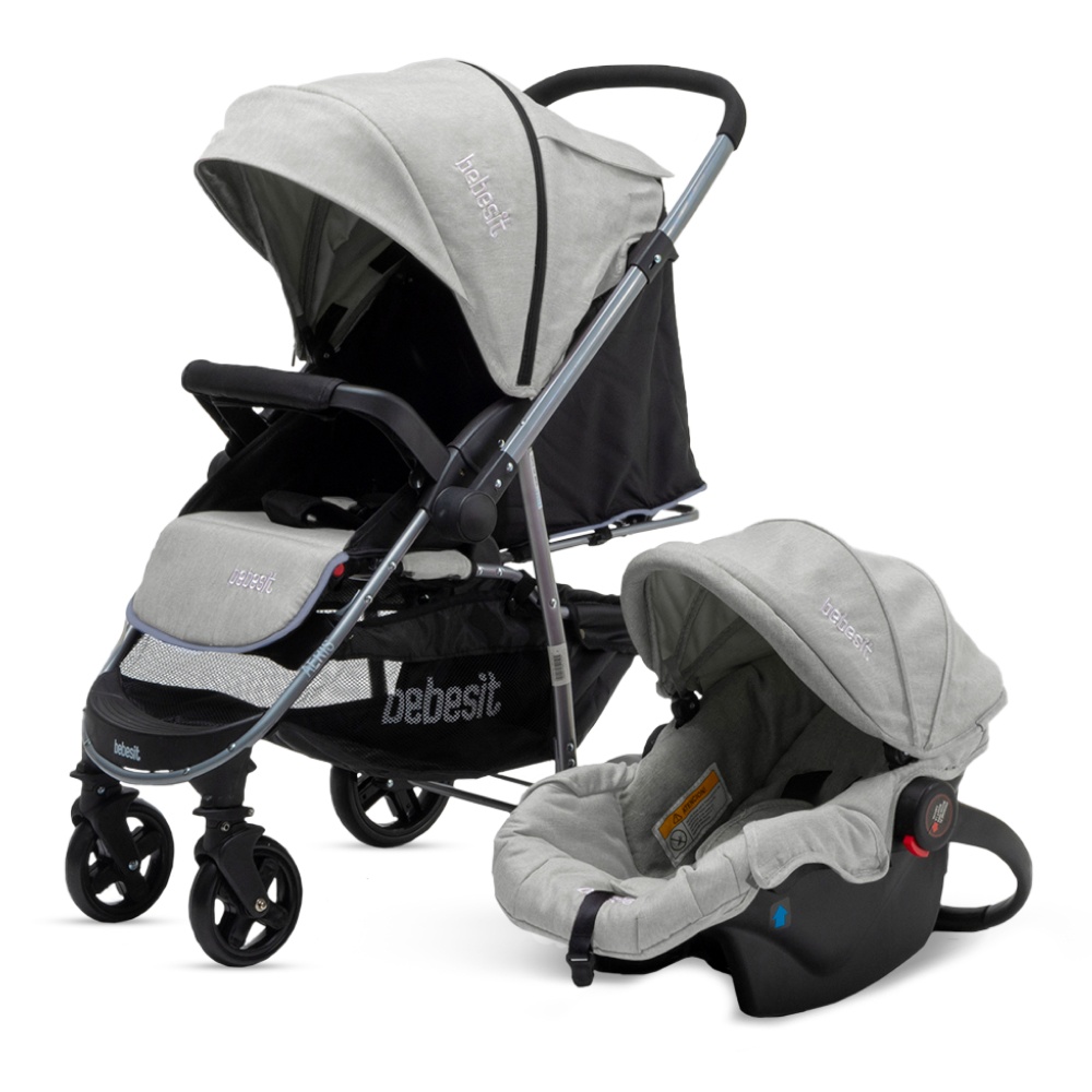 Cochecito Travel System Gris Claro con Manillar Rebatible
